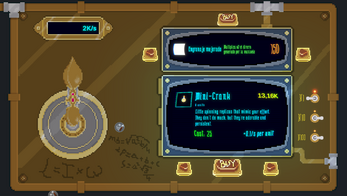 Still need 399 units to buy 10 mini cranks, which give me... 1 unit/s? Game needs some serious tweaking. Either make upgrades a lot cheaper or much more effective. On a positive note, I like the artwork and the music.